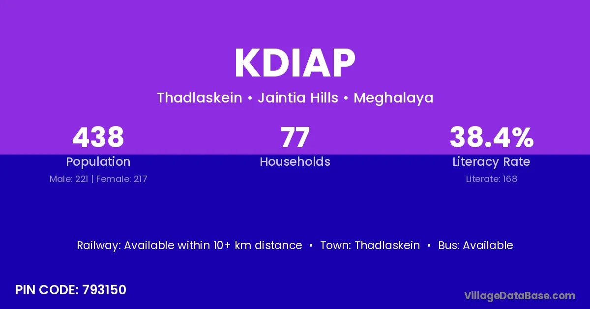 Thadlaskein is the nearest town to Kdiap village for major economic activities