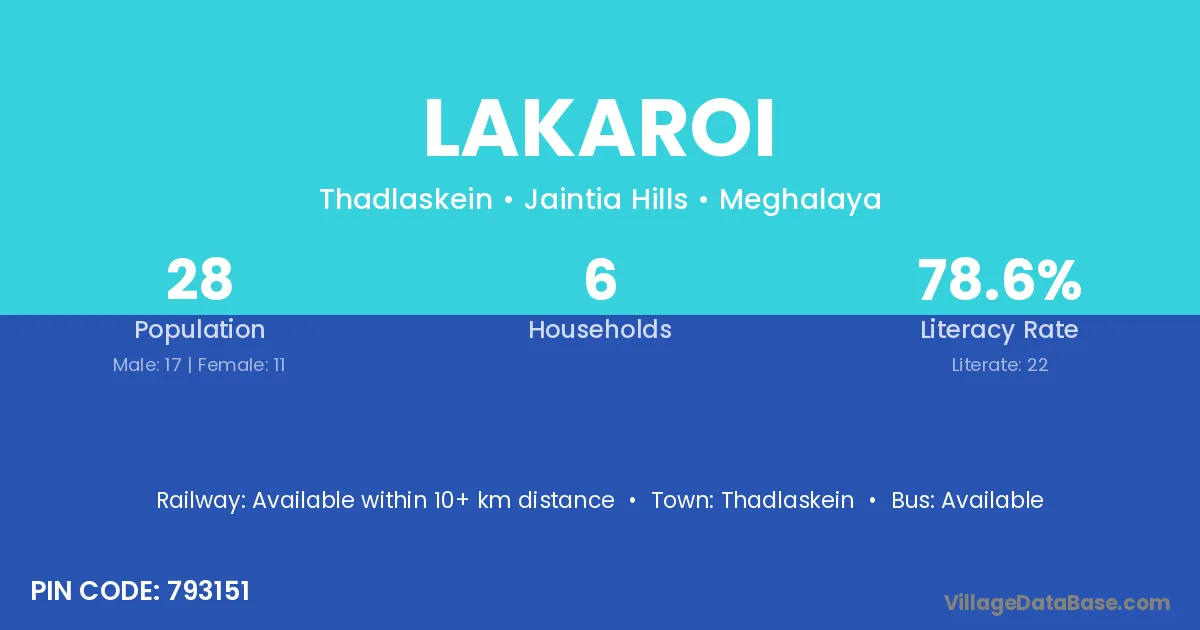 According to Census 2011 information, the village code of Lakaroi village is 793151.