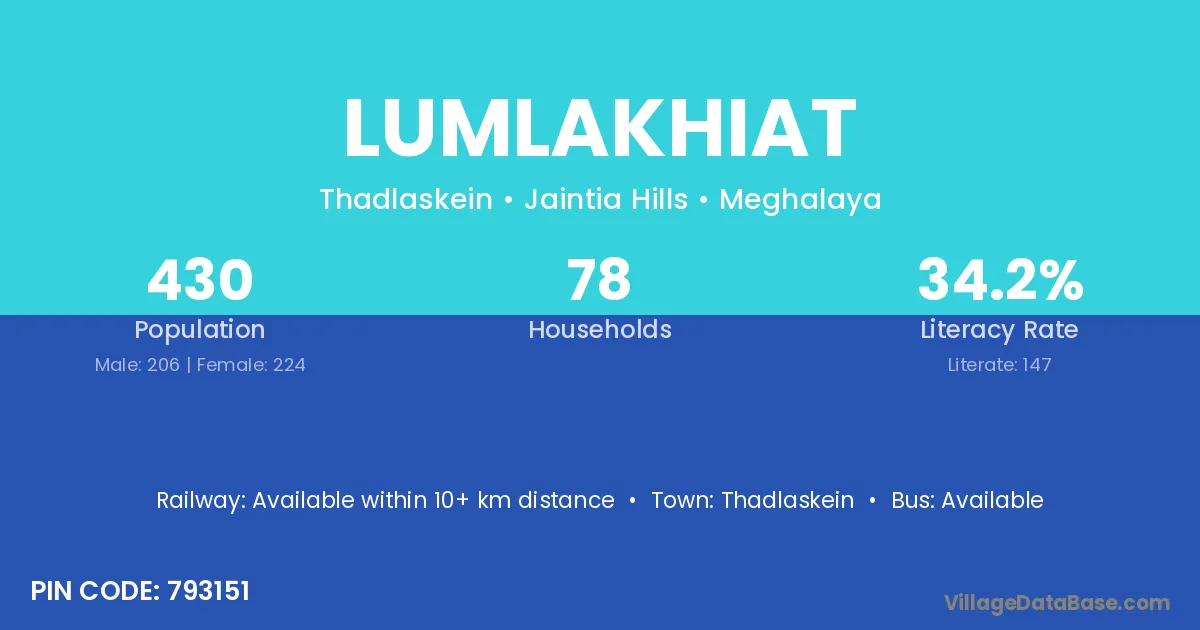 Thadlaskein is the nearest town to Lumlakhiat village for major economic activities