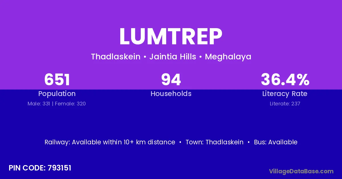 Thadlaskein is the nearest town to Lumtrep village for major economic activities
