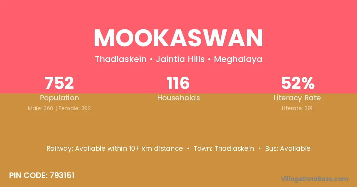 Thadlaskein is the nearest town to Mookaswan village for major economic activities