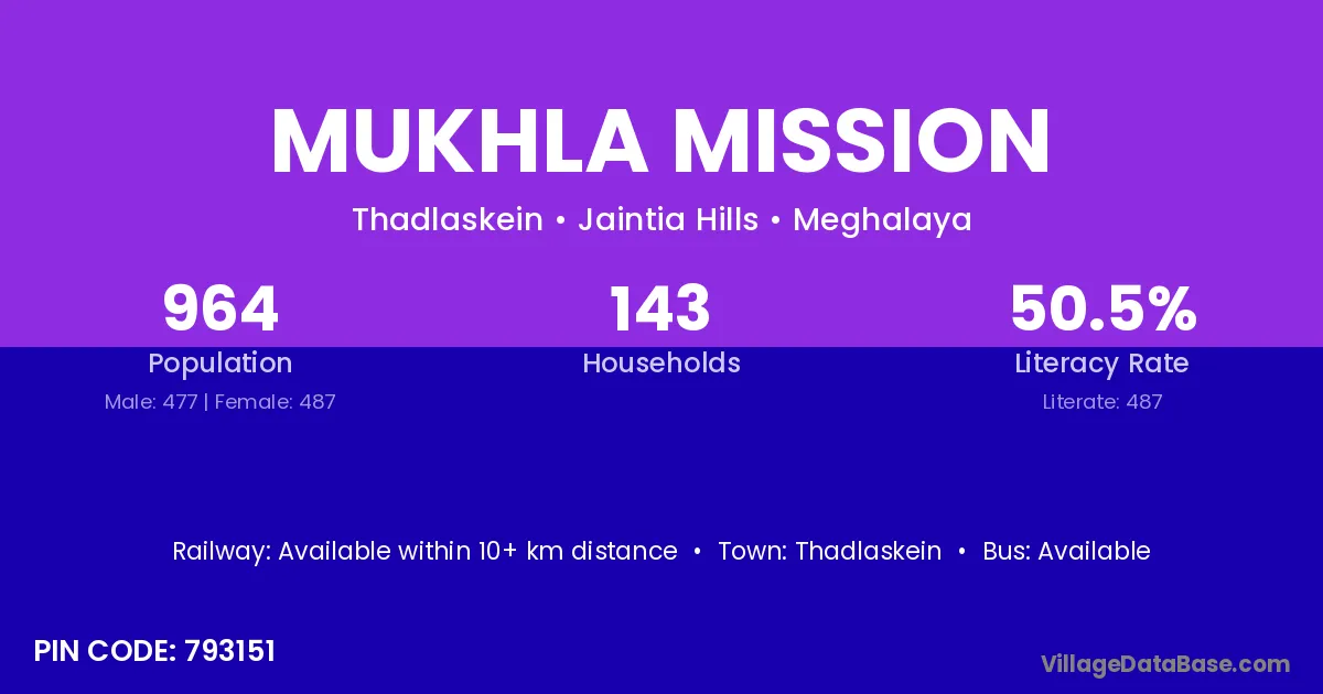 Thadlaskein is the nearest town to Mukhla Mission village for major economic activities