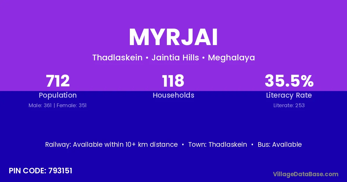 Thadlaskein is the nearest town to Myrjai village for major economic activities