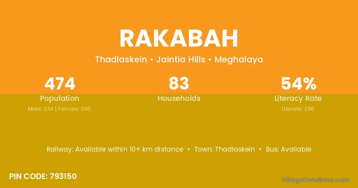 Thadlaskein is the nearest town to Rakabah village for major economic activities