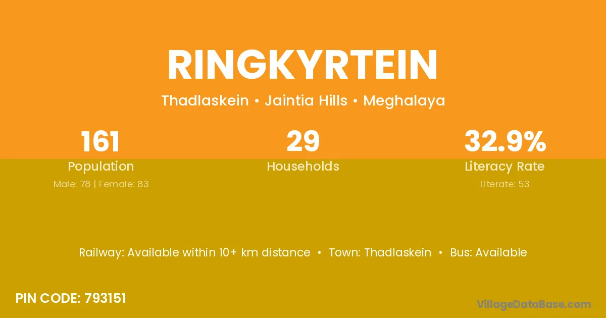 Thadlaskein is the nearest town to Ringkyrtein village for major economic activities
