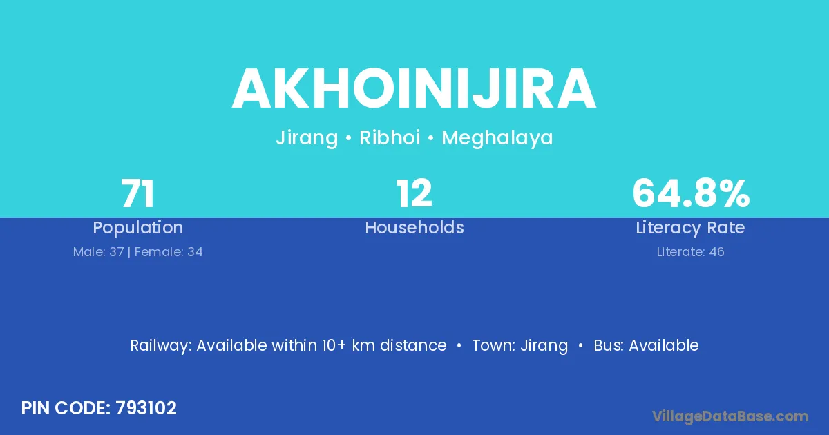 Akhoinijira village has a total population of 71 people, of which 37 are males and 34 are females.