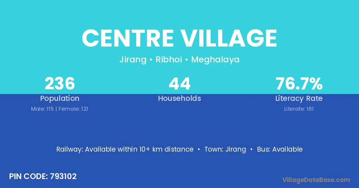 According to Census 2011 information, the village code of Centre Village village is 793102.