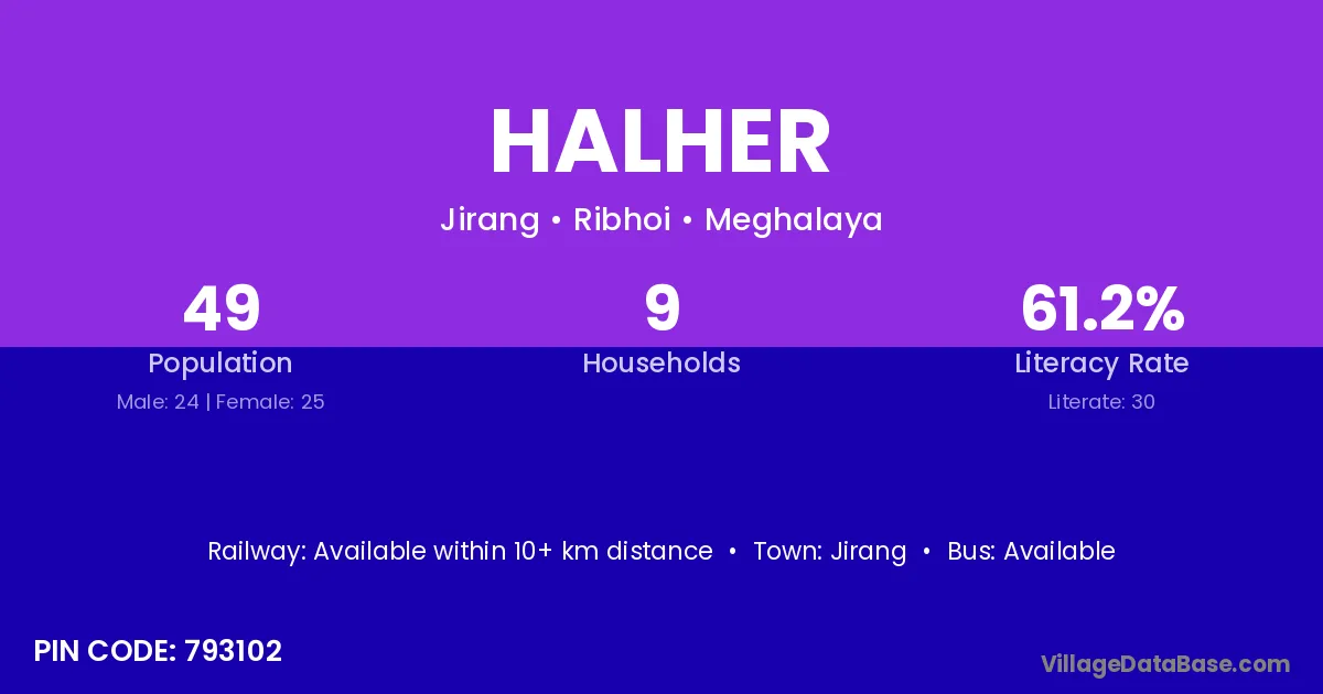 According to Census 2011 information, the village code of Halher village is 793102.