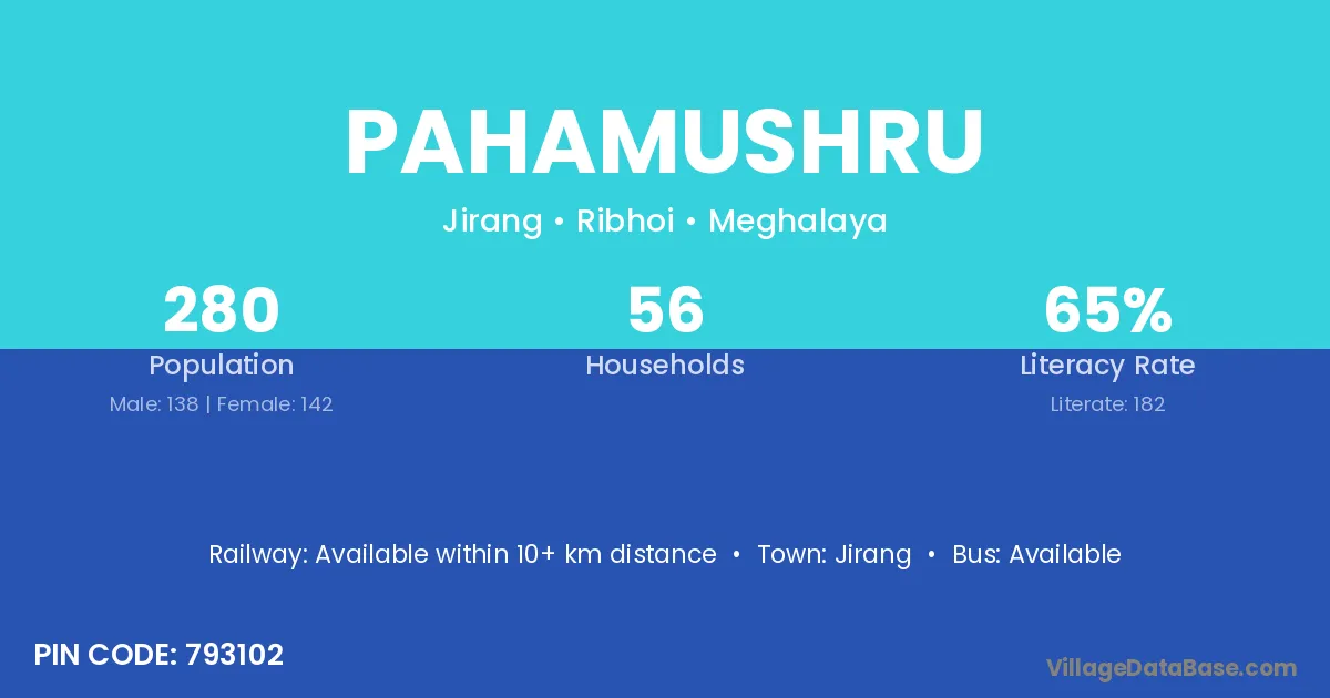 Pahamushru village has a total population of 280 people, of which 138 are males and 142 are females.