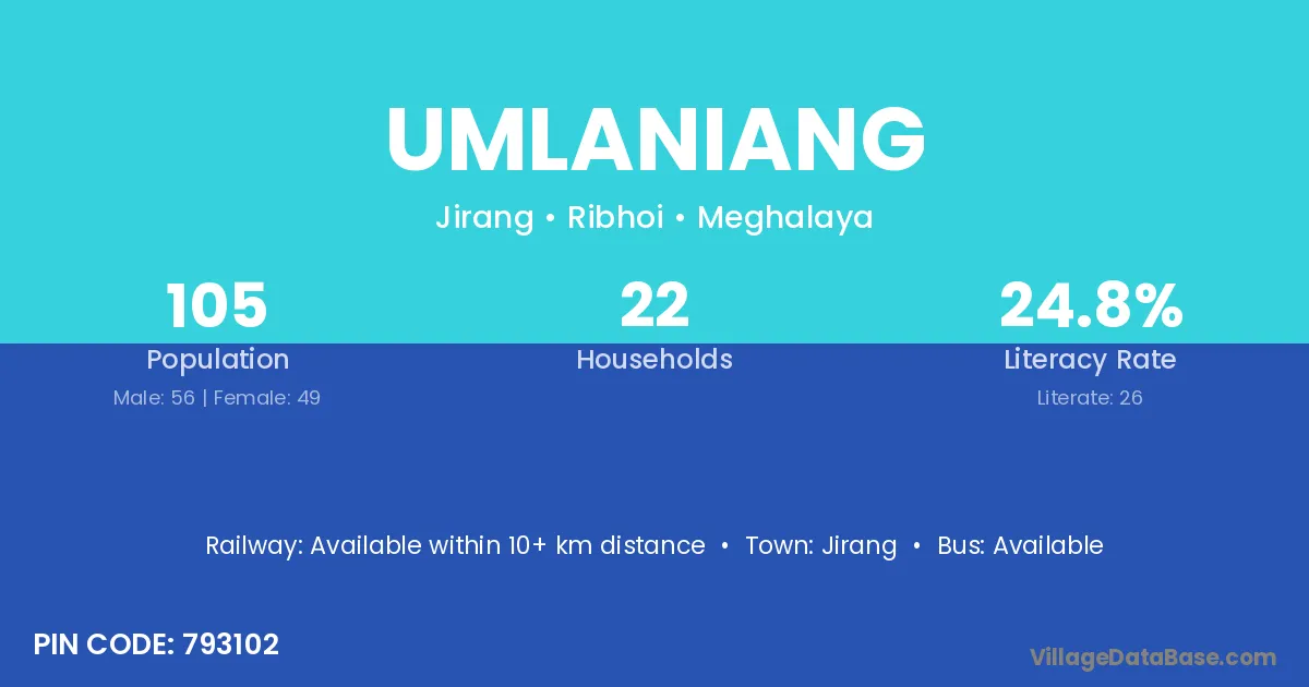 Umlaniang village has a total population of 105 people, of which 56 are males and 49 are females.
