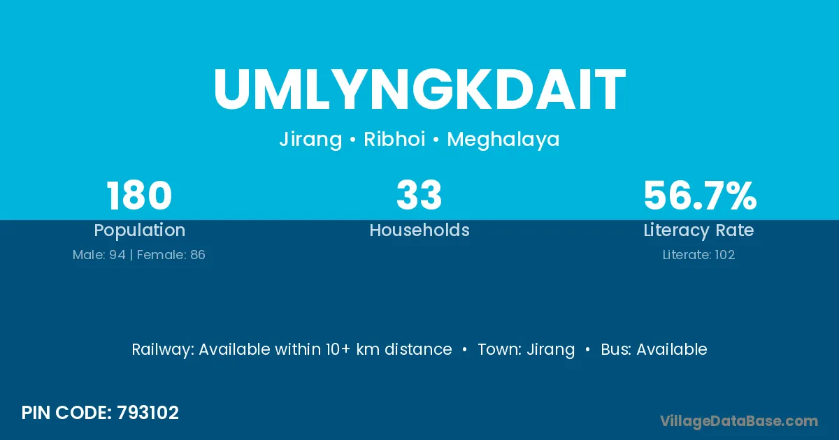 Jirang is the nearest town to Umlyngkdait village for major economic activities