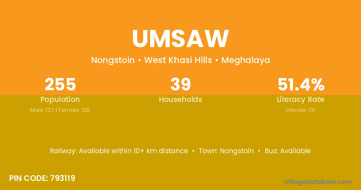 According to Census 2011 information, the village code of Umsaw village is 793123.