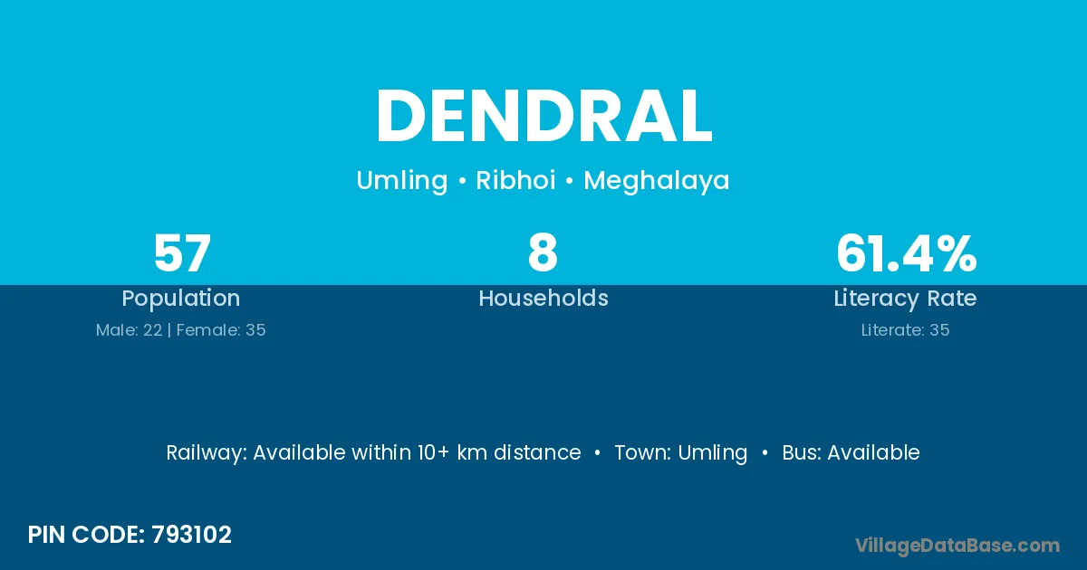 Umling is the nearest town to Dendral village for major economic activities