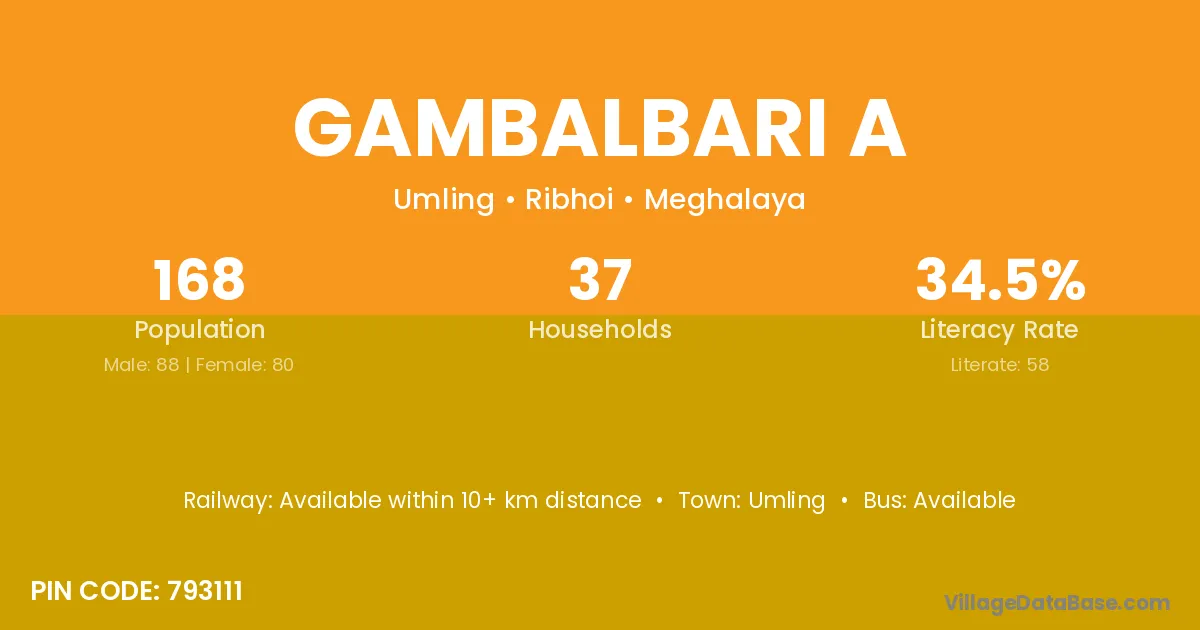 Gambalbari A village has a total population of 168 people, of which 88 are males and 80 are females.