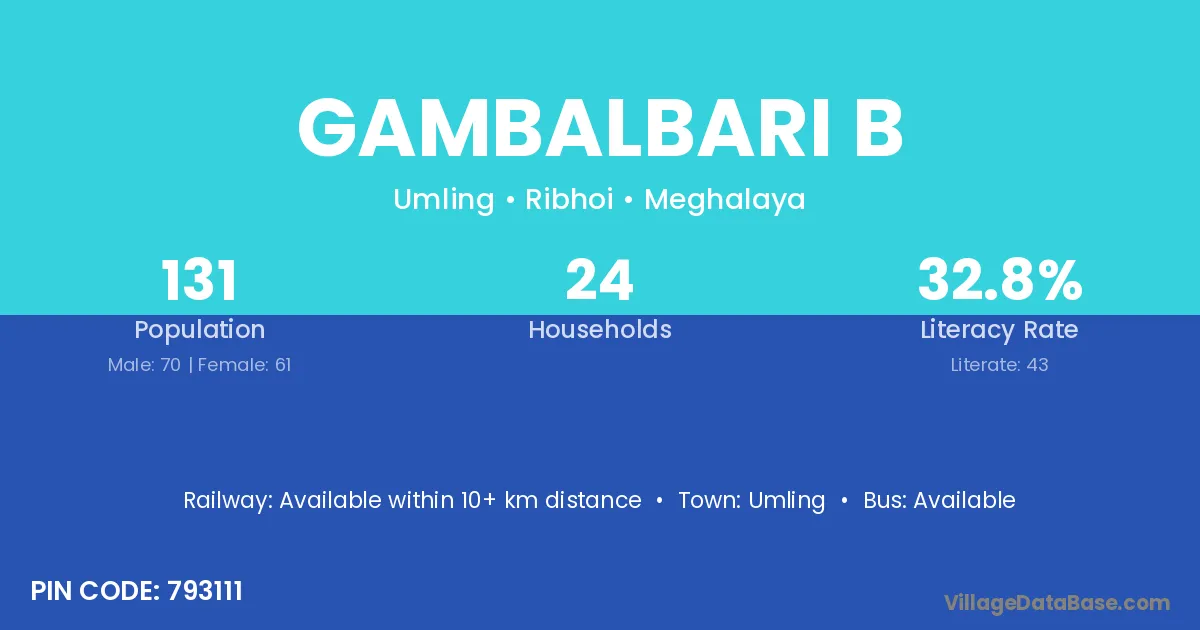Gambalbari B village has a total population of 131 people, of which 70 are males and 61 are females.
