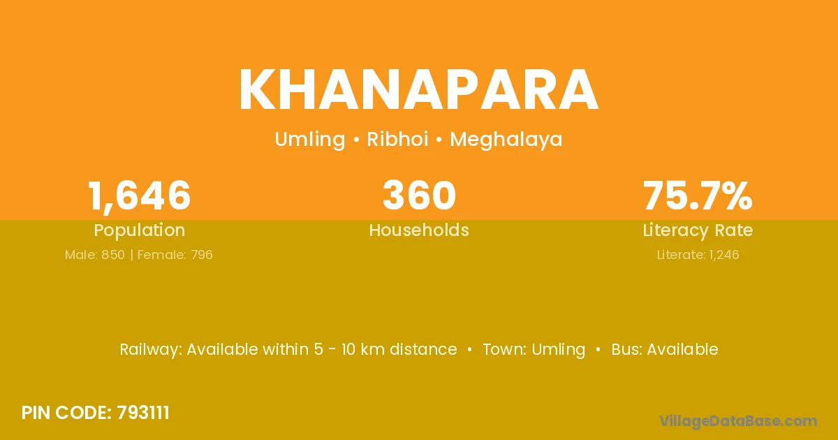 Khanapara village has a total population of 1,646 people, of which 850 are males and 796 are females.