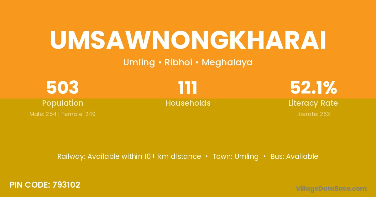 Umsawnongkharai village has a total population of 503 people, of which 254 are males and 249 are females.