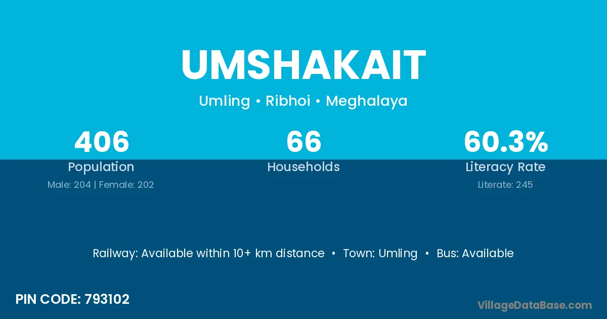 Umshakait village has a total population of 406 people, of which 204 are males and 202 are females.
