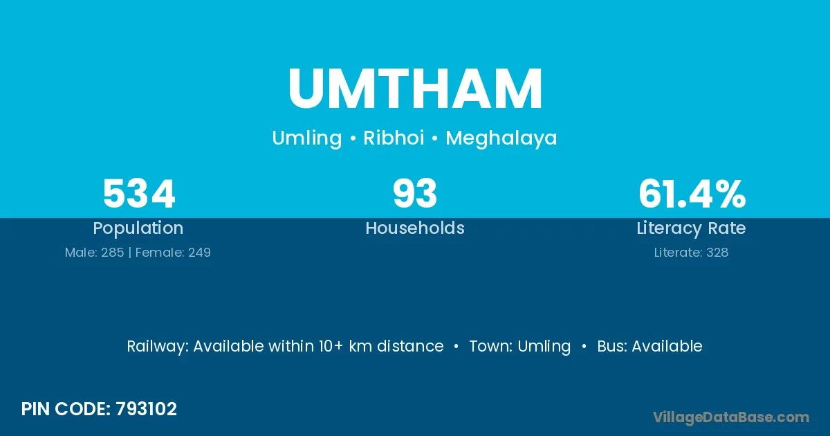 Umtham village has a total population of 534 people, of which 285 are males and 249 are females.