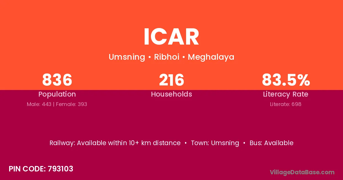 Icar village has a total population of 836 people, of which 443 are males and 393 are females.