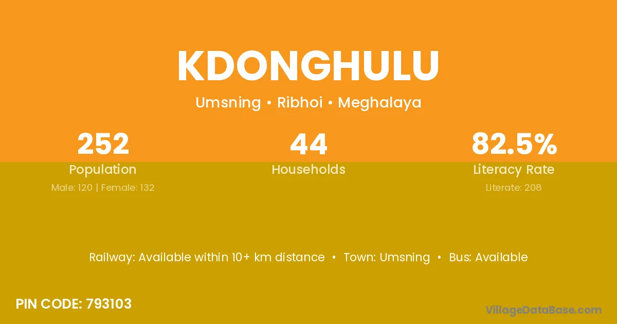 Kdonghulu village has a total population of 252 people, of which 120 are males and 132 are females.
