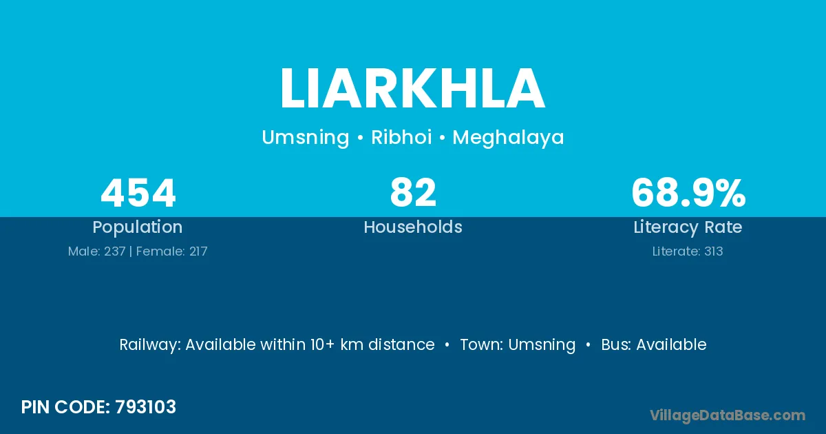 According to Census 2011 information, the village code of Liarkhla village is 793103.