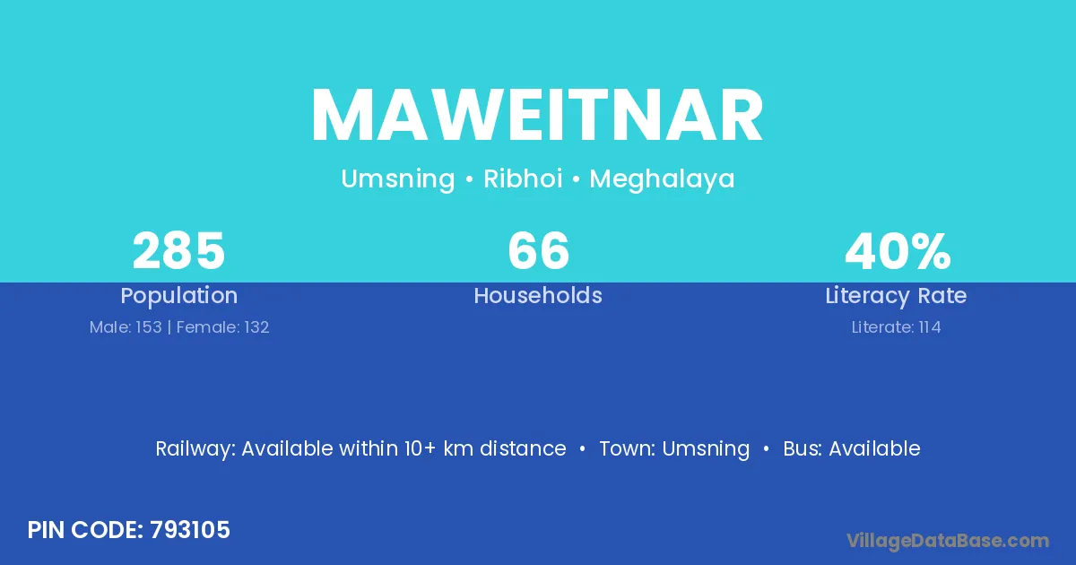 Maweitnar village has a total population of 285 people, of which 153 are males and 132 are females.