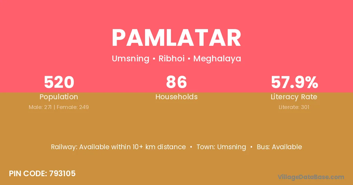 According to Census 2011 information, the village code of Pamlatar village is 793105.