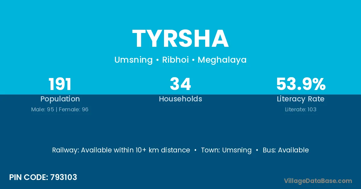 According to Census 2011 information, the village code of Tyrsha village is 793103.