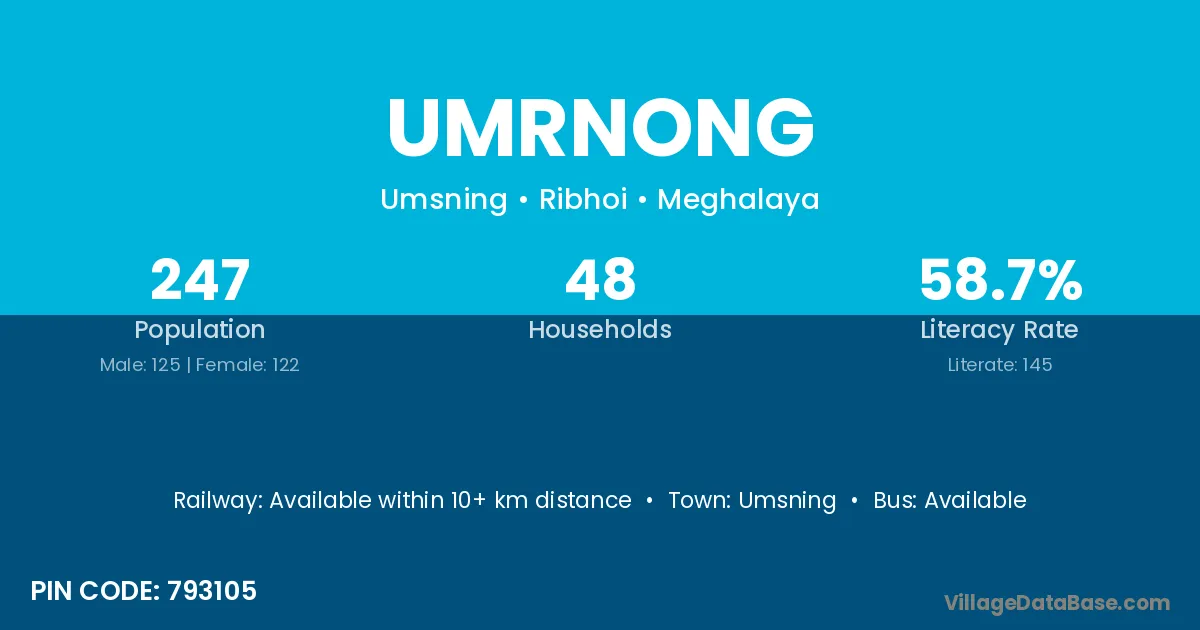According to Census 2011 information, the village code of Umrnong village is 793105.