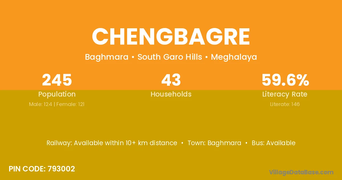 Baghmara is the nearest town to Chengbagre village for major economic activities