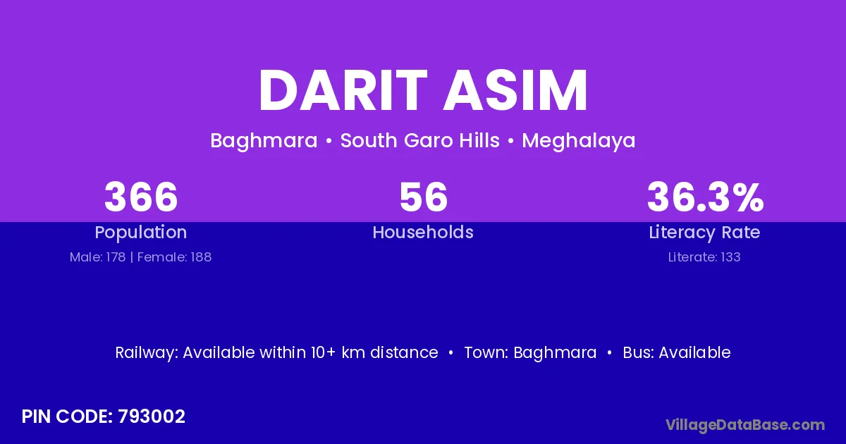 Baghmara is the nearest town to Darit Asim village for major economic activities