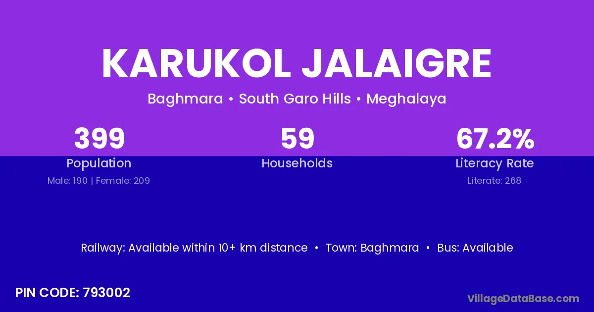 Baghmara is the nearest town to Karukol Jalaigre village for major economic activities