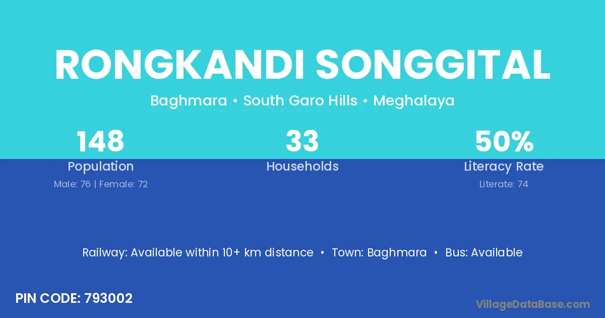 Baghmara is the nearest town to Rongkandi Songgital village for major economic activities