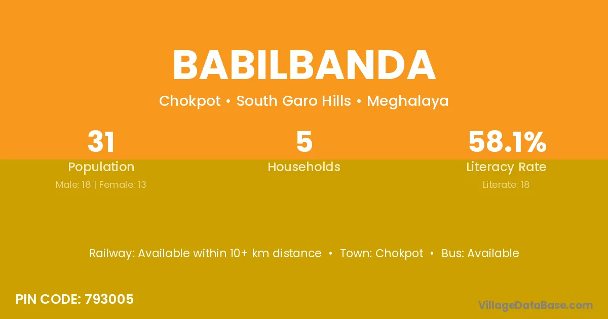 According to Census 2011 information, the village code of Babilbanda village is 793005.