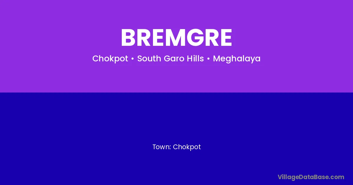 Bremgre village is located in the Chokpot Subdivision of the South Garo Hills district in Meghalaya .