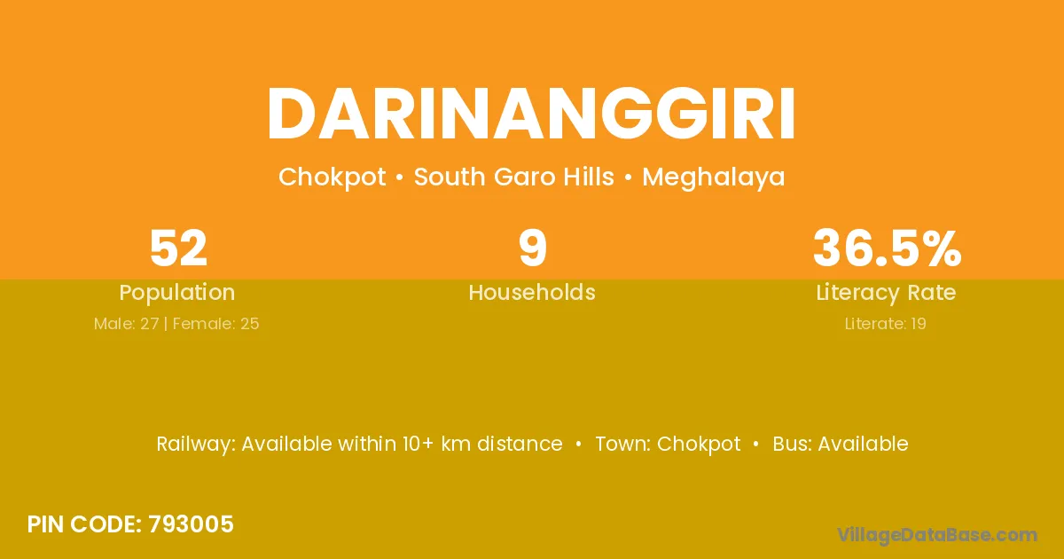 Darinanggiri village has a total population of 52 people, of which 27 are males and 25 are females.