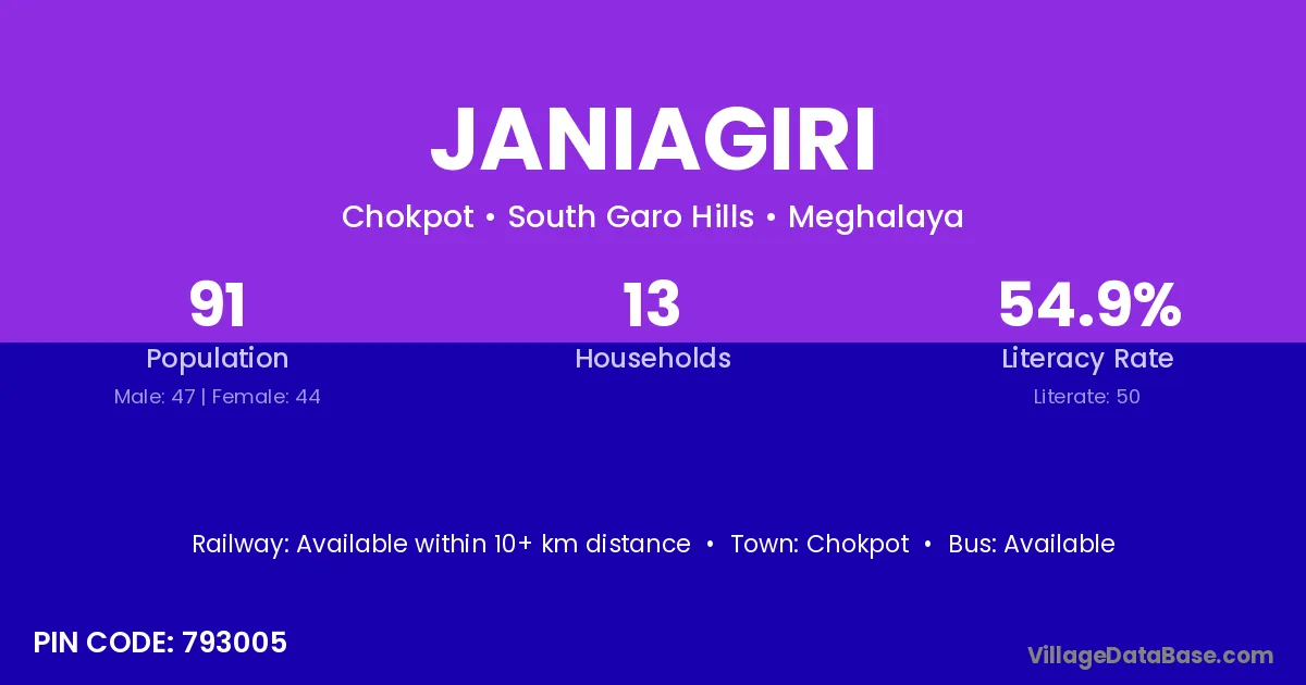 According to Census 2011 information, the village code of Janiagiri village is 793005.