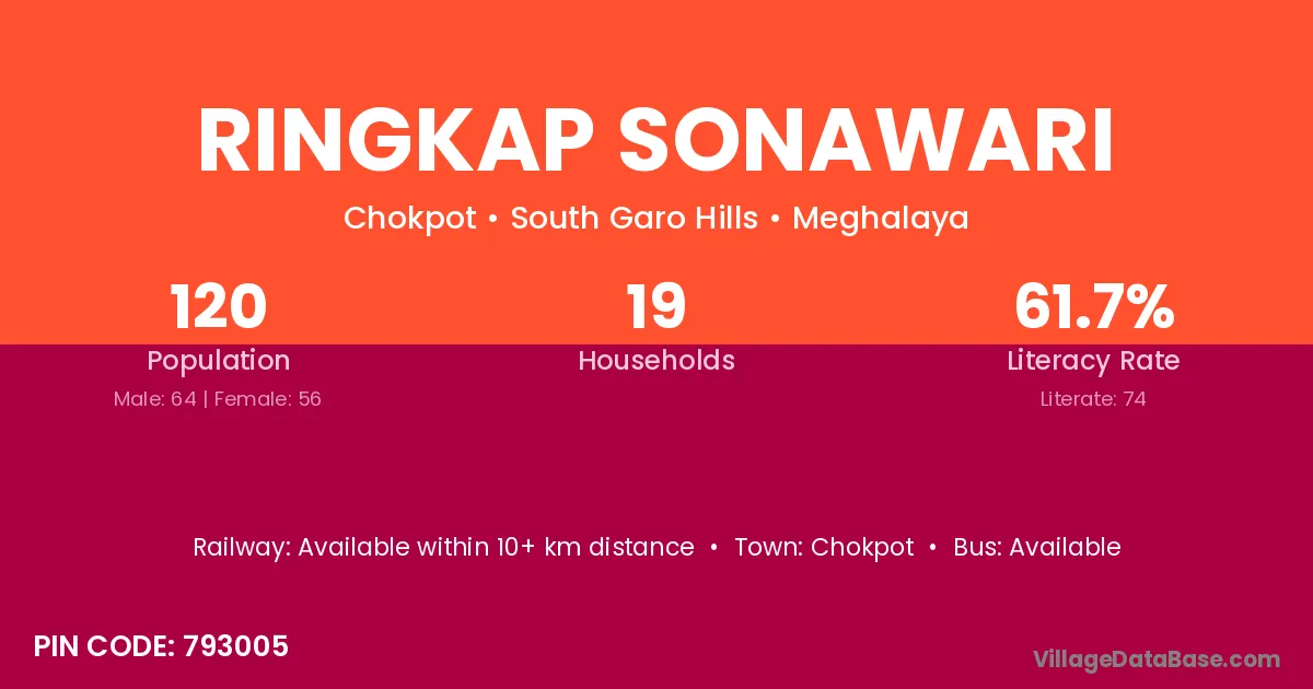 Ringkap Sonawari village has a total population of 120 people, of which 64 are males and 56 are females.