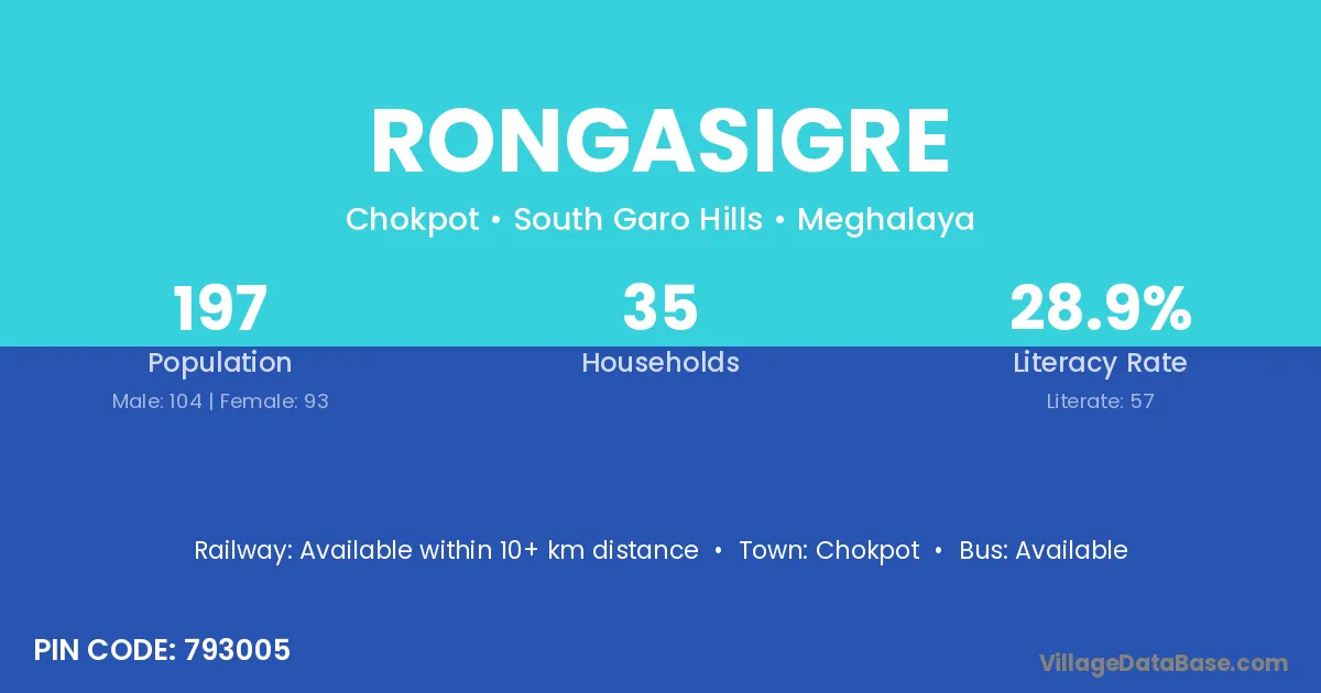 According to Census 2011 information, the village code of Rongasigre village is 793005.