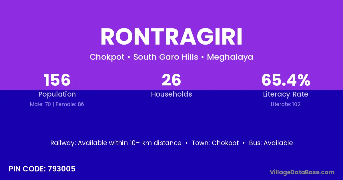 Rontragiri village has a total population of 156 people, of which 70 are males and 86 are females.