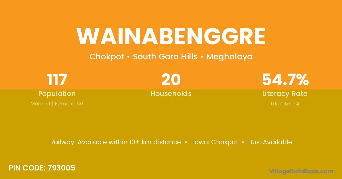 Wainabenggre village has a total population of 117 people, of which 51 are males and 66 are females.