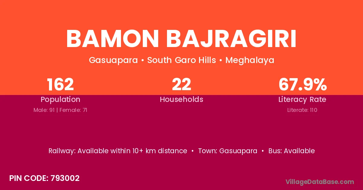 According to Census 2011 information, the village code of Bamon Bajragiri village is 793002.