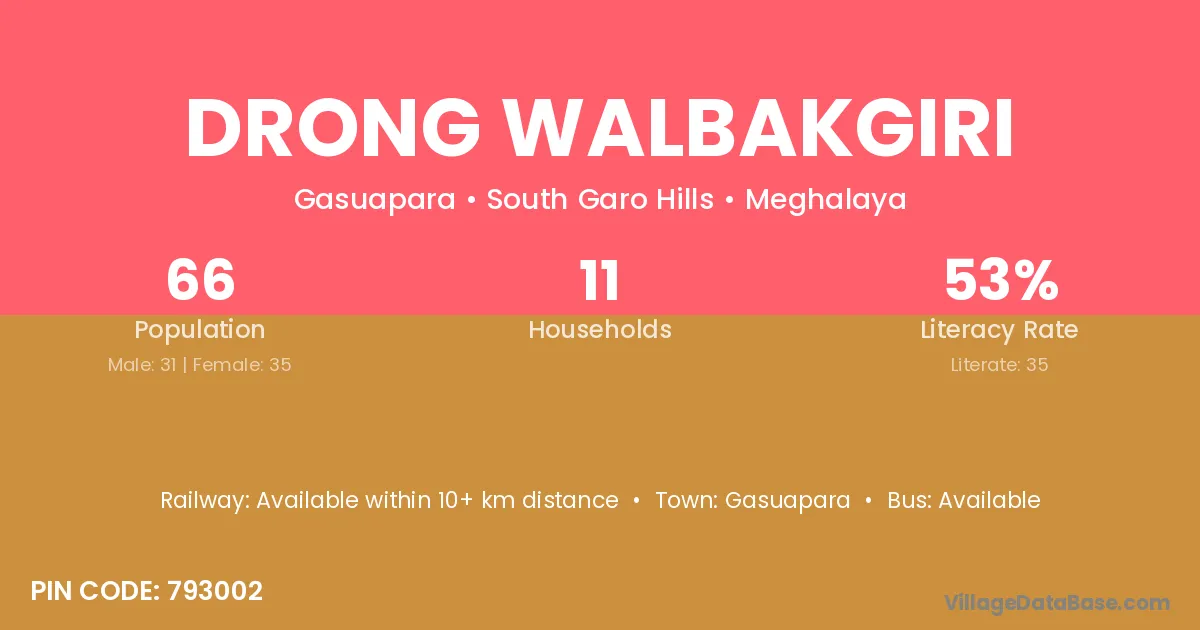 Drong Walbakgiri village has a total population of 66 people, of which 31 are males and 35 are females.