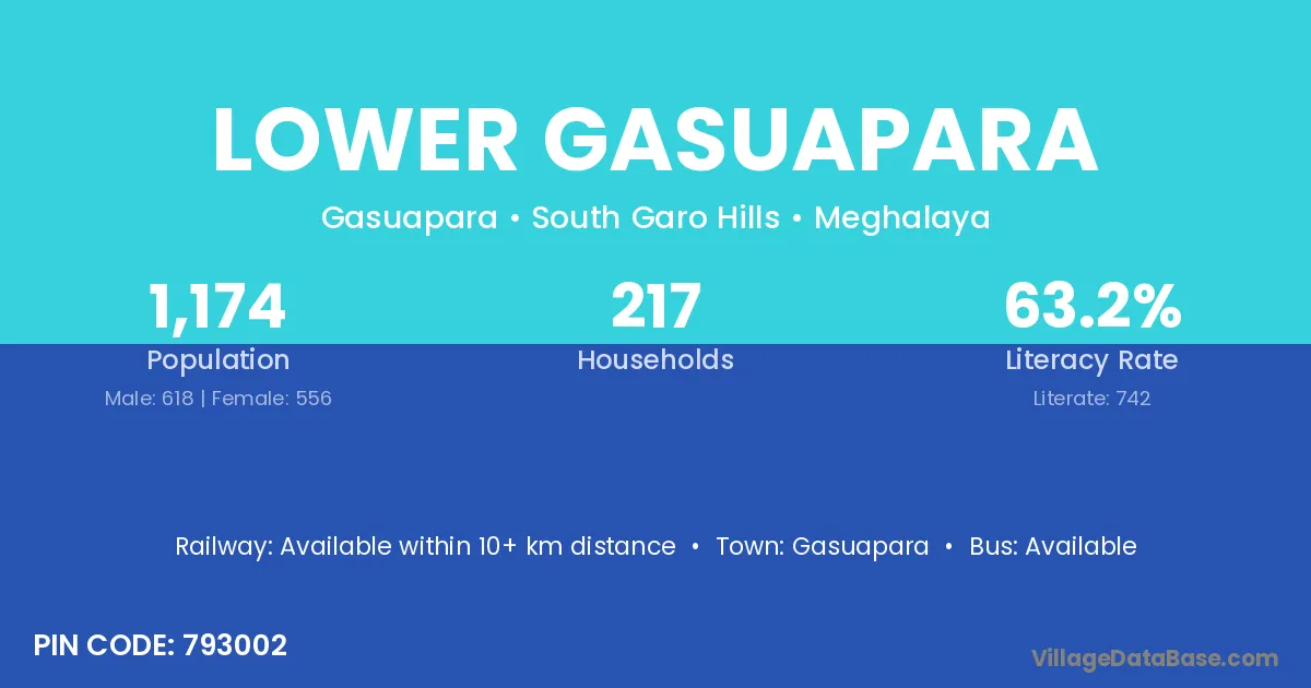 According to Census 2011 information, the village code of Lower Gasuapara village is 793002.