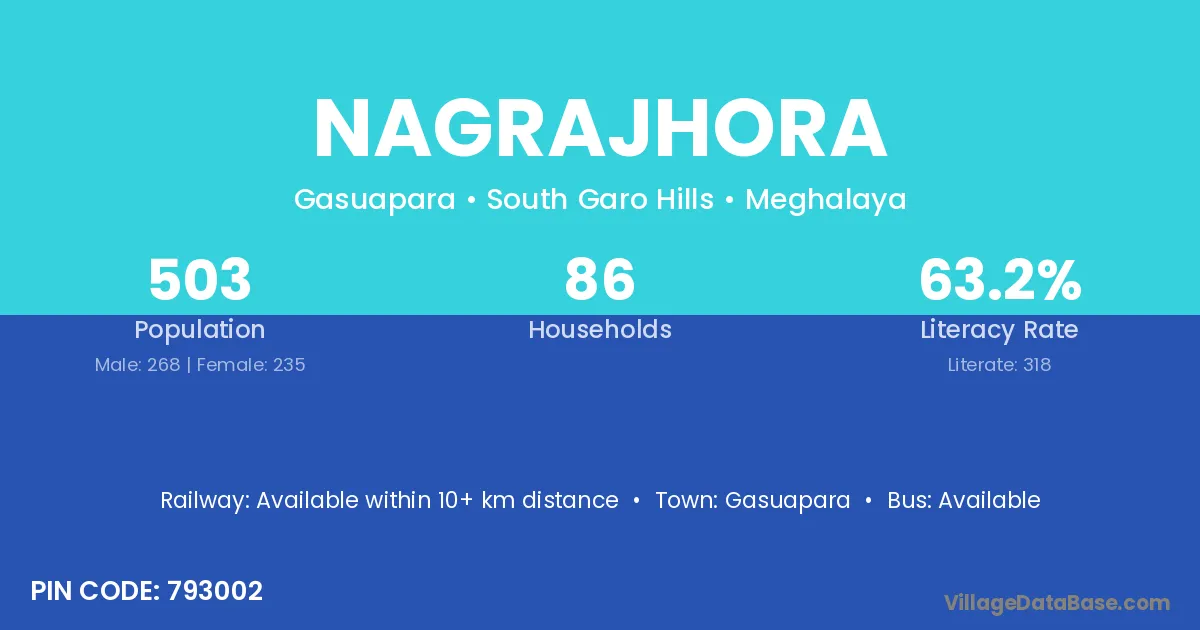 Nagrajhora village has a total population of 503 people, of which 268 are males and 235 are females.