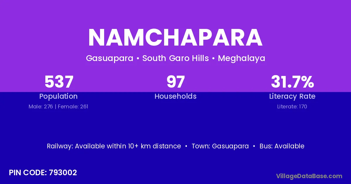 According to Census 2011 information, the village code of Namchapara village is 793002.