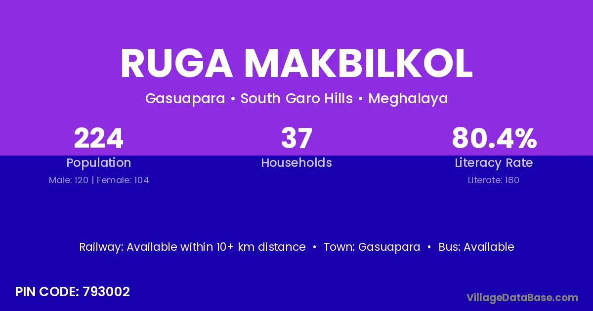 According to Census 2011 information, the village code of Ruga Makbilkol village is 793002.