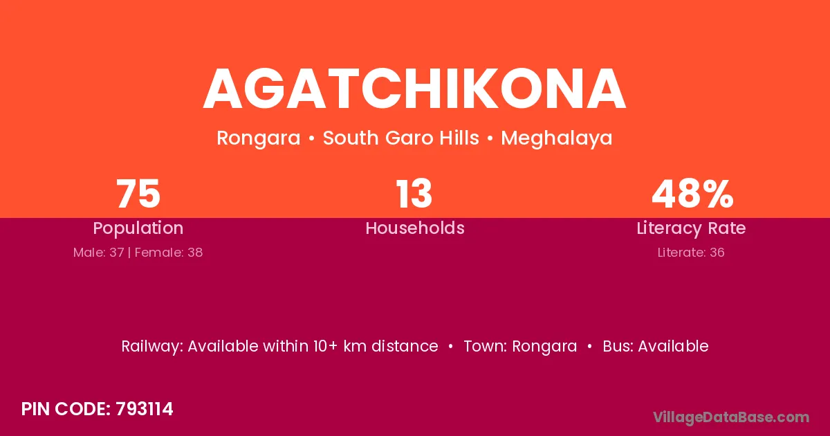 Agatchikona village has a total population of 75 people, of which 37 are males and 38 are females.