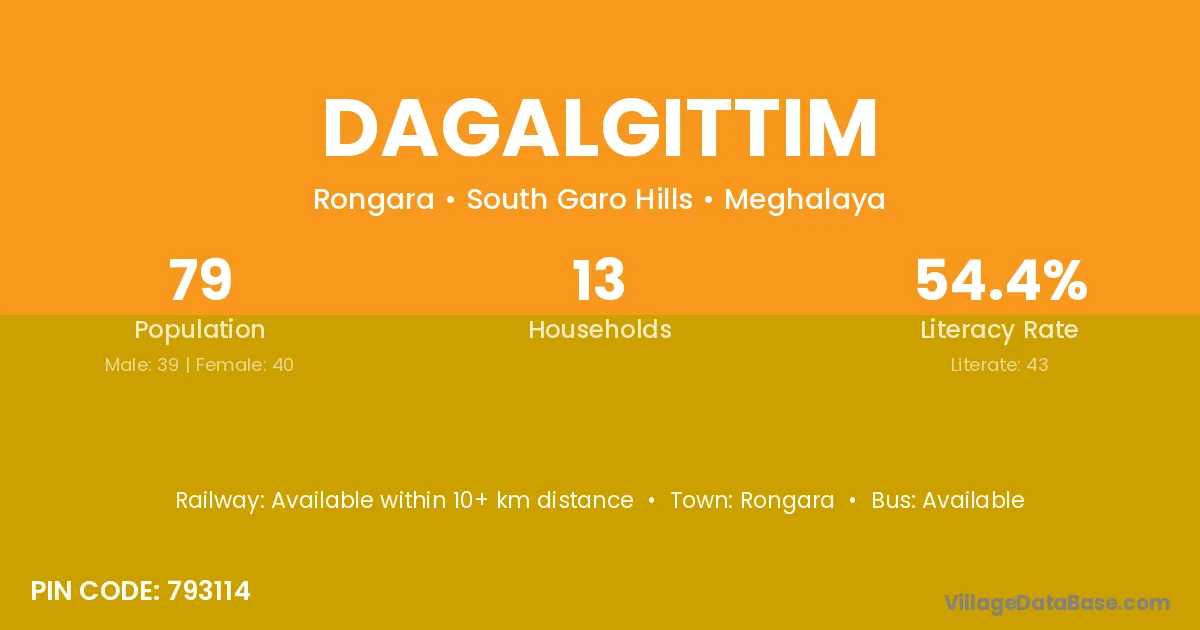 Dagalgittim village has a total population of 79 people, of which 39 are males and 40 are females.